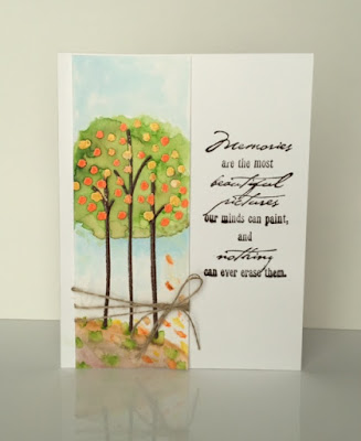 This is for the challenge at Casual Fridays Time To Color I made my card using Casual Fridays Stamp set Calm and Gentle. I heat embossed it with browns and yellows and then used a water color with Zig pens to fill in the greens and browns. Pretty simple!!